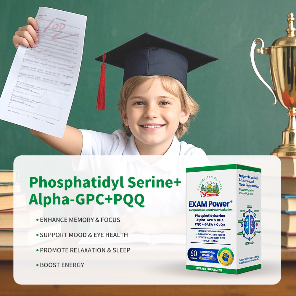 EXAM Power+ is a supplement specially designed for exam takers. By enhancing 8 key indicators of brain health, it supports memory, focus, mood, sleep, and eye health, while continuously providing brain energy to maintain optimal brain function and help achieve exceptional results.